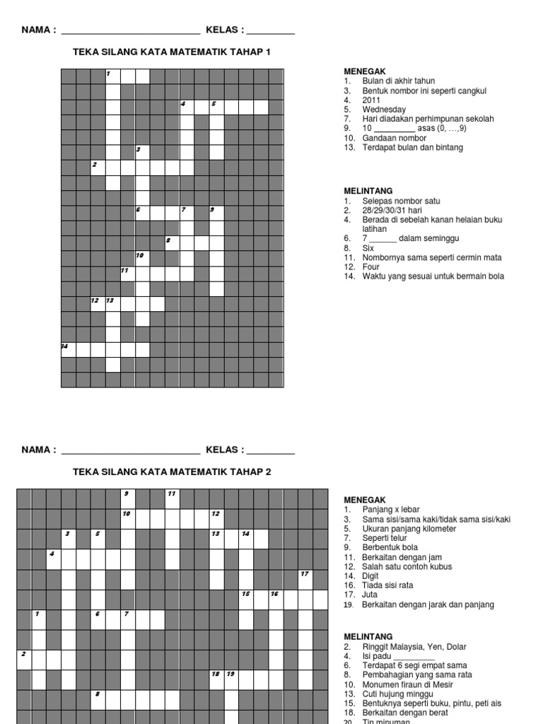 Pelbagai Teka Silang Kata Matematik Tahap 1 Yang Sangat Menarik Untuk Murid Download Pendidikan Abad Ke 21